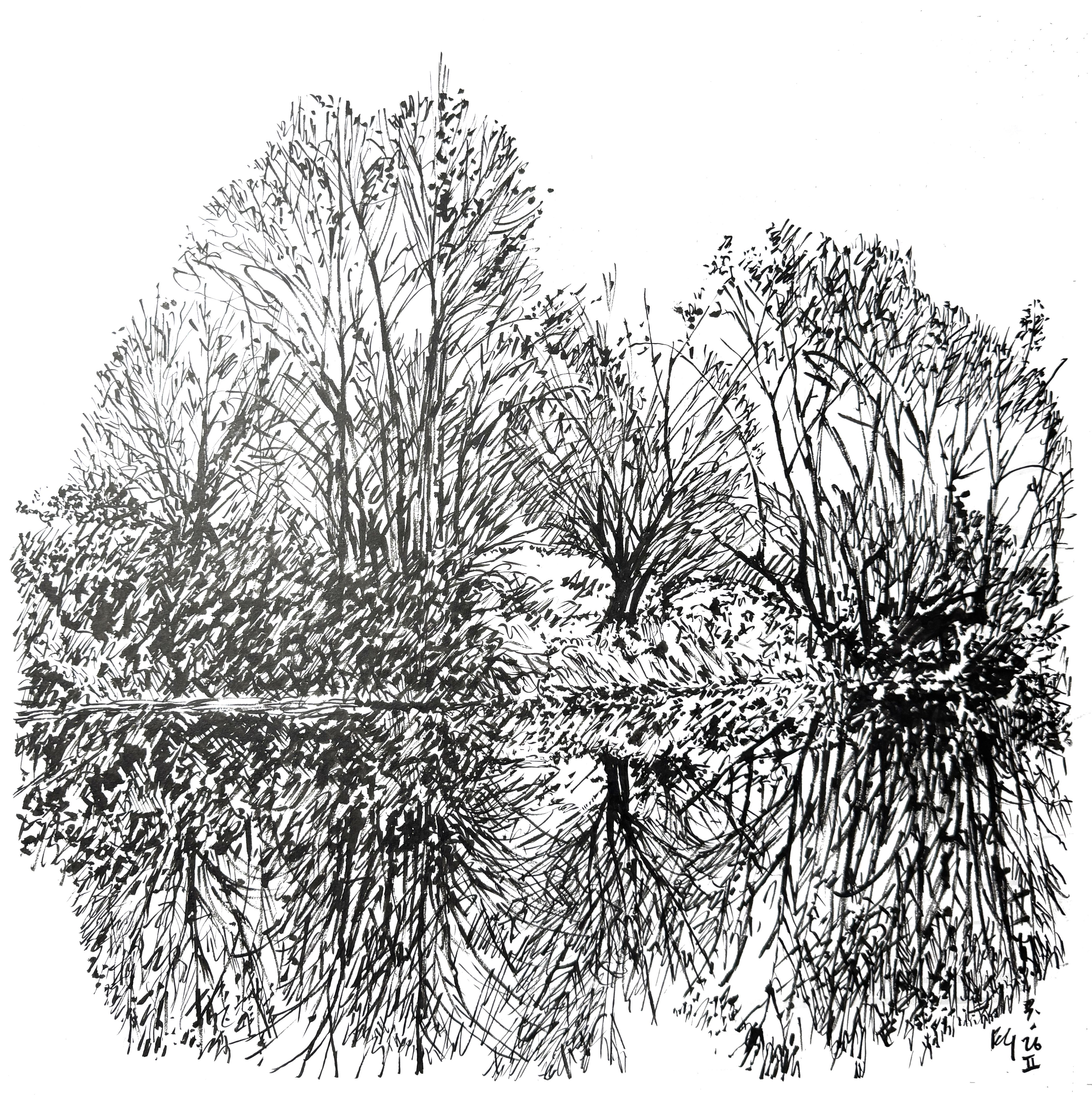 222. "Riflessi d'inverno sul Tesina" (cm.48x48) - Pennello di china