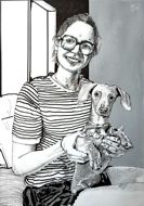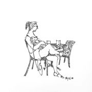 220. "La donna con il cocker al bar” (cm.15x15) - Pennarello nero |
