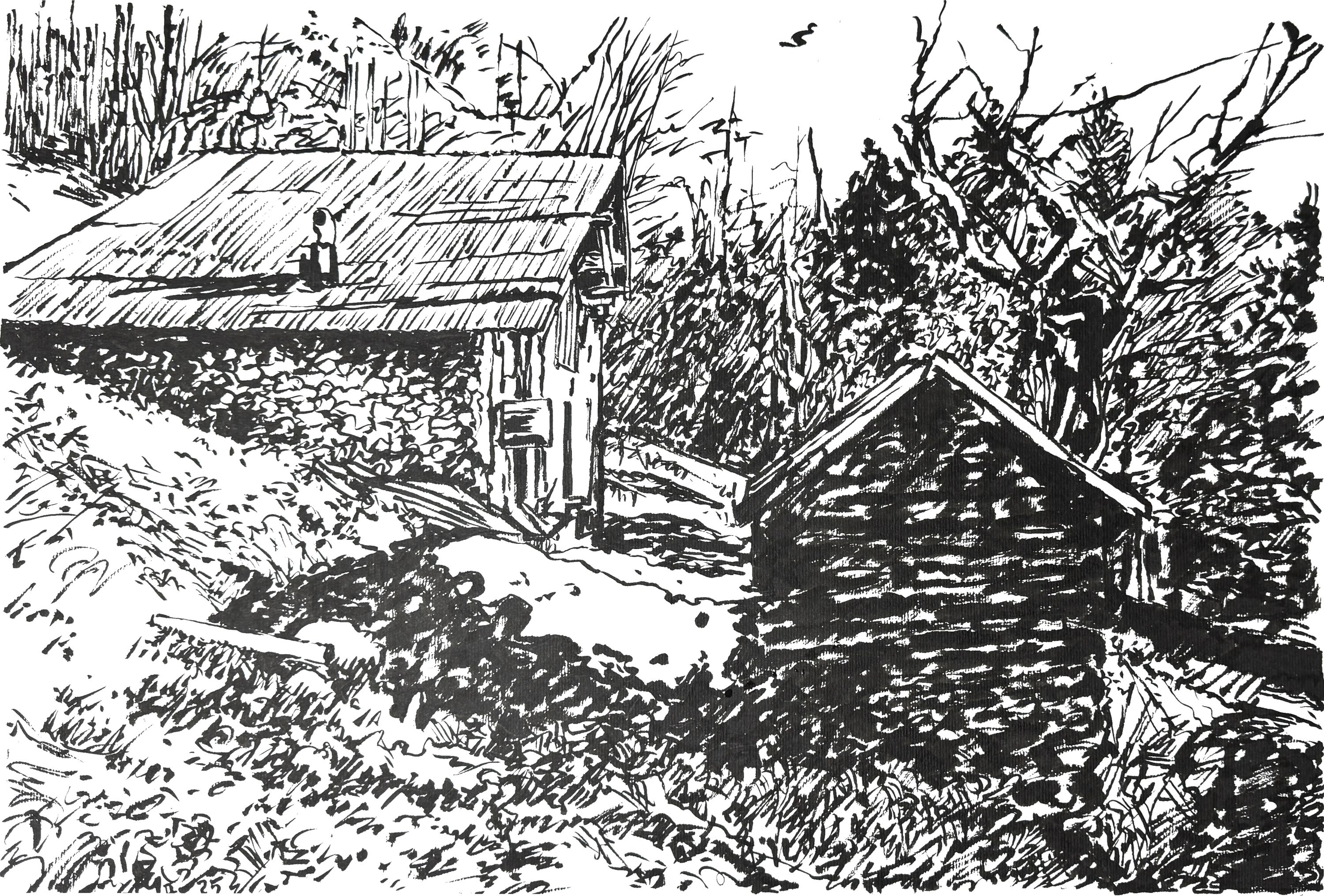 109. Quest'anno il nostro giovane noce non ha dato frutti (cm.21x24) - Pennello di china |
